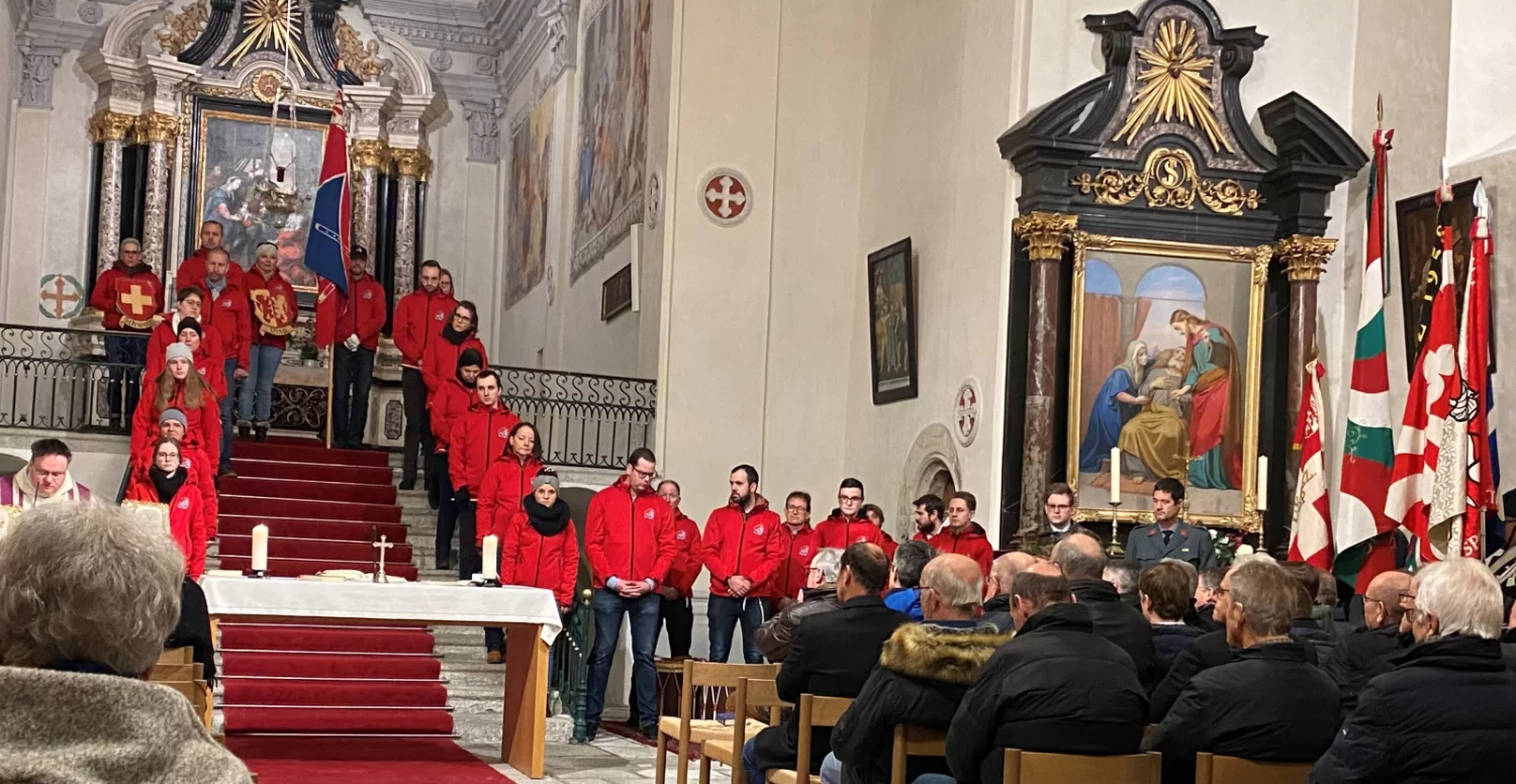 Nach einem feierlichen Einzug durch die Visper Burgschaft folgte eine Gedächtnisfeier in der Dreikönigs-Kirche in Visp. Umrahmt wurde die Feier von den Tambouren und Pfeifer von Visp, begleitet von den Trachtendamen, den verschiedenen Fahnendelegationen und der Ehrenkompanie.