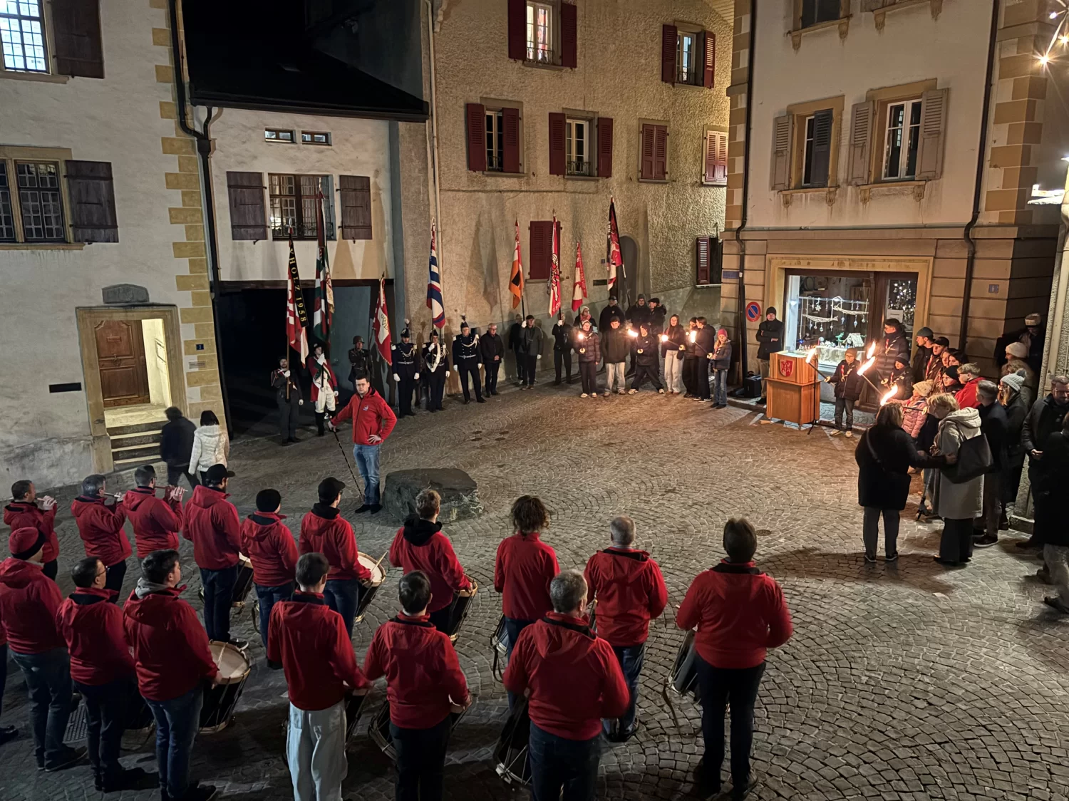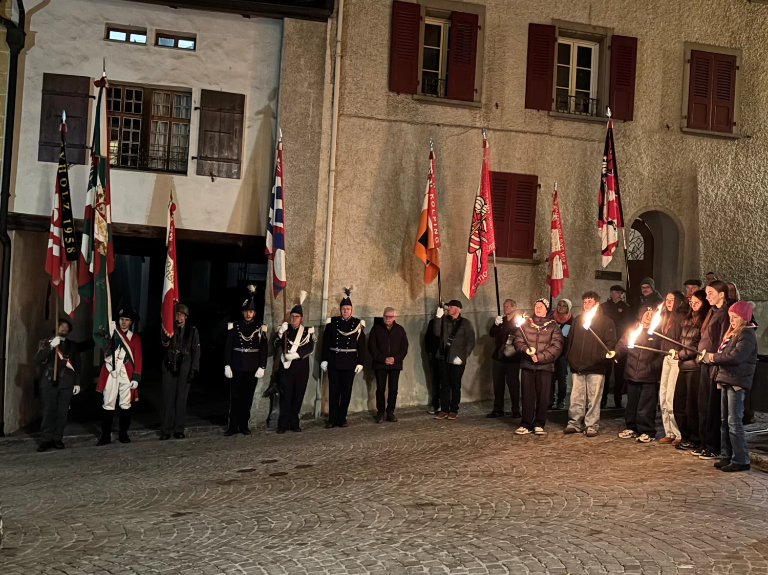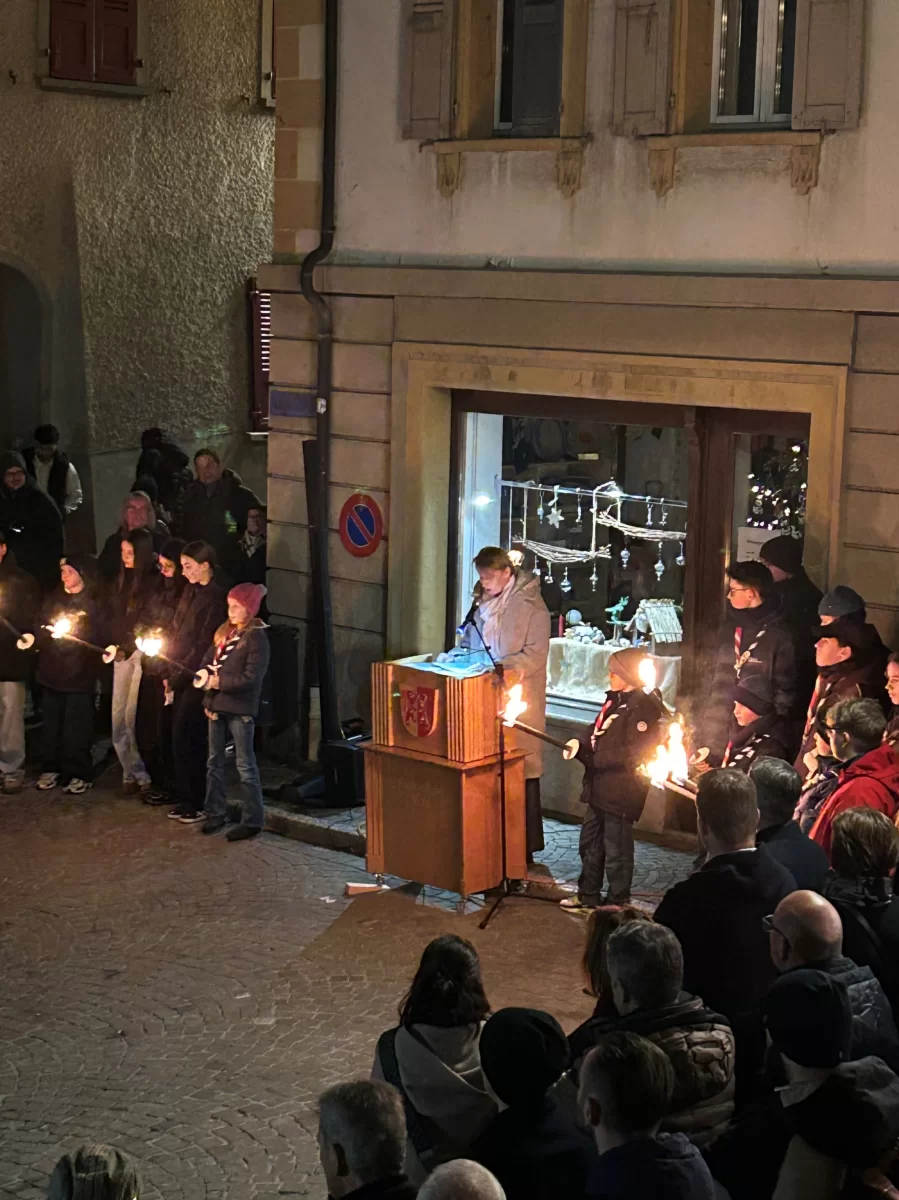 Am 17. Dezember stand Visp ganz im Zeichen der traditionellen Feier zum Mannenmittwoch. Dabei erinnerte sich die Visper Bevölkerung an die historische Schlacht aus dem Jahre 1388 rund um den «Blauen Stein», als der Graf von Savoyen in Visp eine bedeutende Niederlage erlitt. Kurz vor 18.00 Uhr zogen der Burger- und Gemeinderat sowie zahlreiche Gäste in Begleitung der Tambouren- und Pfeifern von Visp, einer Delegation mit den verschiedenen Vereinsfahnen, der Ehrenkompanie, den Trachtendamen und der Schützenzunft in die Dreikönigskirche. Pfarrer Pascal Venetz zelebrierte die Messe, die vom Kirchenchor Visp und den Tambouren- und Pfeifer umrahmt wurde. Für das anschliessende Manifest beim «Blauen Stein» konnte die Festrednerin Silvia Bayard, Theologin und Unternehmerin, gewonnen werden. In ihrer Festrede stellte sie den Frieden sowie Parallelen zwischen der Kirche und der Mode in den Mittelpunkt. Beide Welten hätten sie geprägt und würden sie bis heute begleiten. Denn am Ende geht es immer um den Menschen - ums Zuhören und Respekt. In allen Branchen gebe es Konflikte, aber auch Chancen und Möglichkeiten. Leben bedeute Veränderung. Sie verwies zudem auf das diesjährige heilige Jahr: «Lasst uns Pilger der Hoffnung sein». Auch im Kleinen könne man wirken. Tobias Wirthner, Vize-Burgermeister, bedankte sich bei der Festrednerin und den beteiligten Vereinen und lud die rund 180 Teilnehmenden ins La Poste ein. Traditionell wurde dort das Menu Polenta mit Sauce Bolognese serviert. Die Feier war geprägt mit schönen Begegnungen, nachdenklichen Worten, musikalischen Eindrücken und adventlicher Atmosphäre.