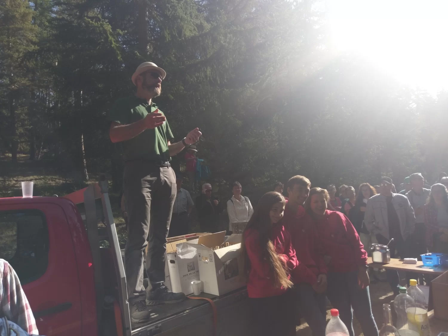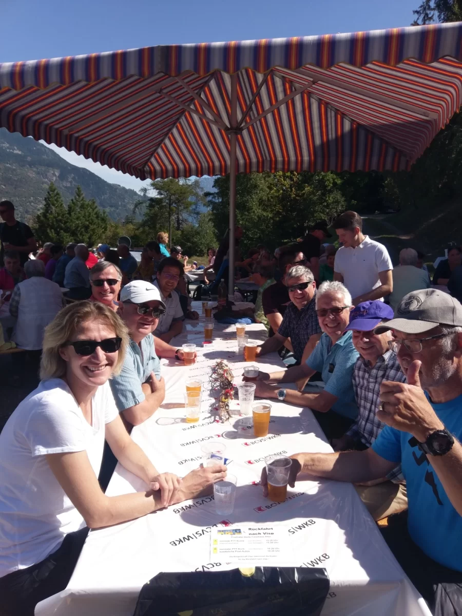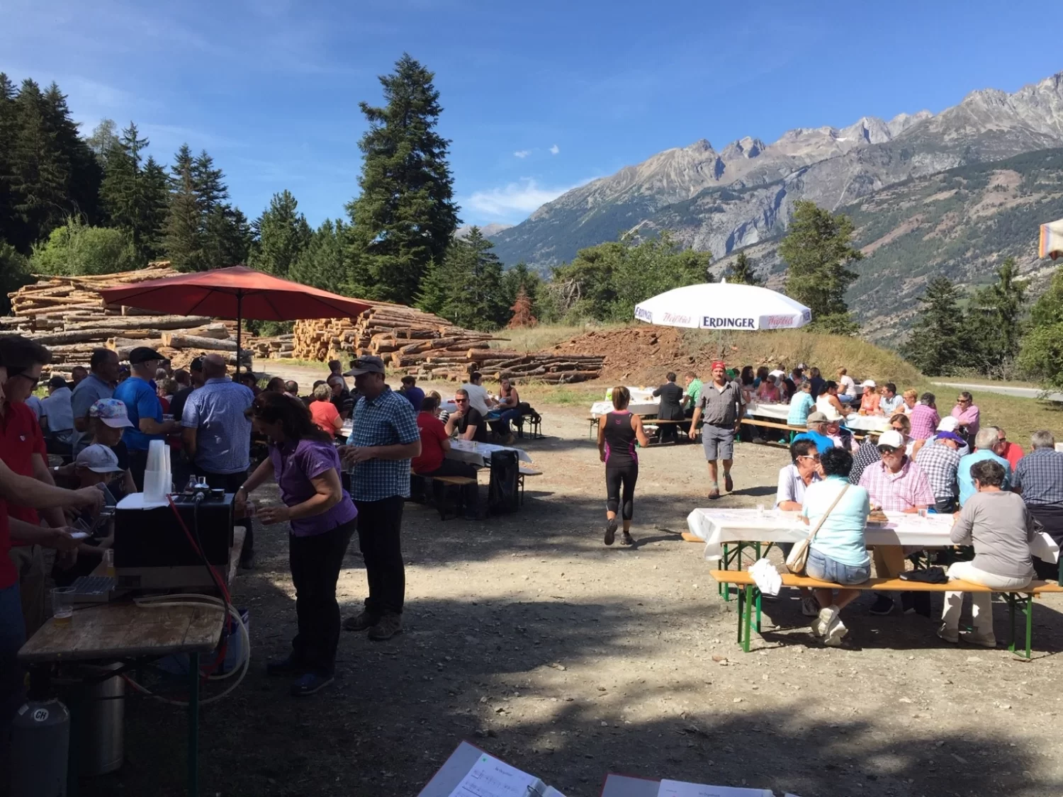 Am Samstag, 14.9.2019, hat die Burgerschaft Visp alle Burgerinnen und Burger sowie zahlreiche Gäste zur traditionellen, jährlich stattfindenden Waldbegehung eingeladen. Rund 165 Teilnehmer fanden sich morgens um 8 Uhr beim Busterminal in Visp ein. Auch Bürgerräte der Bürgergemeinde Solothurn und Basel sind der Einladung der Burgerschaft gefolgt. Nach der Begrüssung durch Burgermeister Georges Schmid und der Einführung durch Waldpräsident Tobias Wirthner beim Rest. Ronalp in Bürchen ging’s zu Fuss weiter in die Hellela. Dort organisierten die Visper Jungburger den z’Nini-Halt. Die Jungburger überraschten die Gäste mit einer Fotoecke, wo jeder sein Erinnerungsfoto machen lassen konnte. Gestärkt mit einer feinen Bouillon und einer Wurst mit Brot wanderten die Teilnehmer Richtung Alt-Zeneggen und durch den „Albuwald“ zum Forsthaus Alba. Unterwegs erklärte der Revierförster, Martin Imesch, die getätigten Waldarbeiten. Beim Forsthaus Alba fanden sich dann auch die Nicht-Wanderer ein. Bei strahlendem Sonnenschein konnte das wohlverdiente Mittagessen eingenommen werden. Wie jedes Jahr bereiteten die Burgerräte den Gästen die Raclettes zu. Die Burgerschaft Visp versucht, die Jungburger vermehrt in diverses Projekten zum Mitmachen zu animieren. Mit viel Elan grillierten deshalb die Jungburger die Würste und Plätzli. Sichtlich zufrieden kehrten die Teilnehmer am späten Nachmittag mit dem Bus oder auch zu Fuss nach Visp zurück.