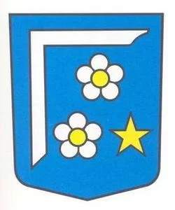 In Blau eine silberne Rose mit goldenen Butzen über einer ebensolchen Rose und einem fünfstrahligen goldenen Stern nebeneinander, die drei Figuren überhöht und rechts begleitet von einem nach links gewendeten silbernen Winkelmass. Sie finden das Wappen im Burgerhaus Eyholz.