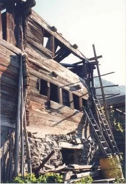 Rechts sehen Sie das Graffen-Haus im Oberdorf. Das verfallene Gebäude gehörte im 17. und 18.Jh. der Familie Graffen.