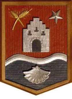 Neuschöpfung von Paul Heldner. Waagrecht geteiltes Wappen. Oberes grösseres Feld: in Rot ein silberner Kornspeicher, beseitet rechts mit zwei goldenen Ähren und links mit einem fünfzackigen silbernen Stern. Unteres kleineres Feld: in Blau eine silberne Muschel. Beide Felder sind durch silberne Wellen getrennt. Sie finden das Wappen in der Burgerstube von Visp.