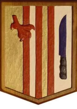 Neuschöpfung von Paul Heldner. In wechselndem Gold- und Silberfeld 3 rote senkrechte Streifen. In der oberen Hälfte des rechten goldenen Felds entwächst eine rote Löwenpranke; im linken silbernen Feld ein nach oben gerichtetes blaues Messer mit schwarzem Griff. Sie finden das Wappen in der Burgerstube von Visp.