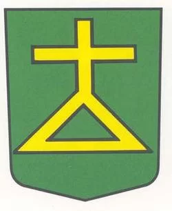 In Grün ein ausgebrochenes goldenes Dreieck, besteckt mit einem ebensolchen Kreuz.