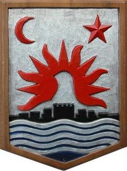 Dieses Wappen wurde grösstenteils vom Fischer- und Küstendorf Kusadasi, ein heute bekannter Touristenort übernommen. Es symbolisiert vier Elemente: das Meer, die Burg, die Sonne sowie eine Friedenstaube. Laut mündlicher Überlieferung gründeten unter anderen auch Vorfahren dieser Familie dieses alte Dorf. Es erhielt den Namen von der gleichnamigen, nahe gelegenen Insel, welche heute durch eine Strasse mit dem Festland verbunden ist. Kusadasi bedeutet auf Deutsch Vogelinsel, darum die Taube im Wappen.