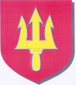 In Rot ein aufrechter goldener Dreizack. Sie finden das Wappen in der Burgerstube von Eyholz.